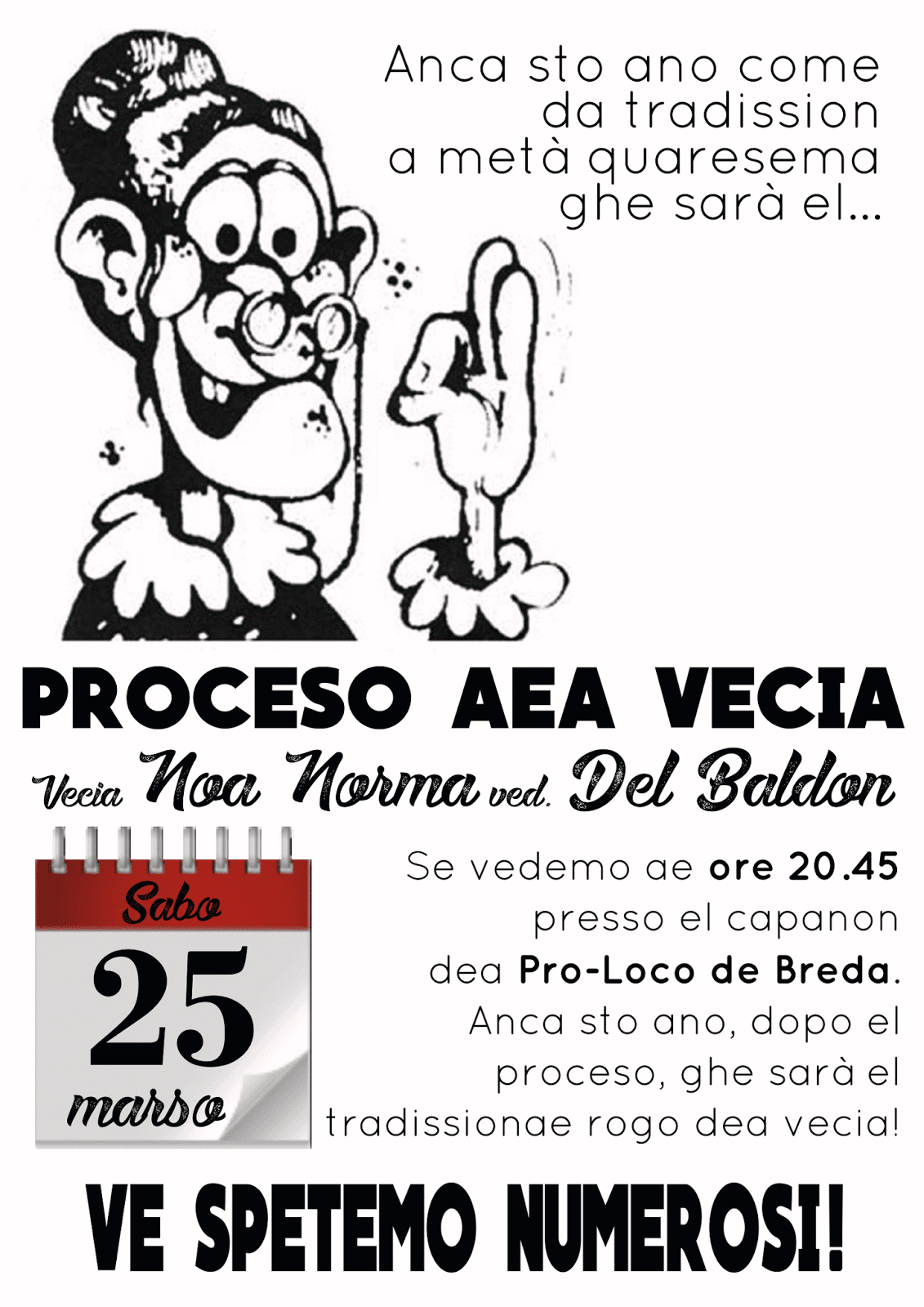 Eh, sì, il "proceso aea vecia", tradizione popolare di metà quaresima che interessa alcune zone del nord est d'Italia, a Breda, è un vero e proprio momento di teatro.